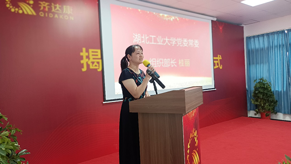 在全場領(lǐng)導(dǎo)和嘉賓的共同見證下,湖工大黨委常委、組織部長桂麗與齊達(dá)康公司董事長兼總裁唐廣洲共同為“清潔能源裝備智能制造企校聯(lián)合創(chuàng)新中心”揭牌。
