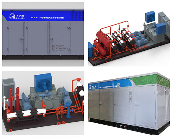 為挖潛增效,保產(chǎn)保供,武漢齊達(dá)康開發(fā)出能適應(yīng)此種工況下氣液混輸天然氣壓縮機(jī)增壓裝置,通過采用壓縮機(jī)增壓輸送,降低氣井(氣水井)井口流動(dòng)壓力,進(jìn)一步提高氣藏采收率,解決: