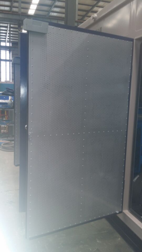 采用消音器+活動百葉窗結構 低溫時,關閉百葉窗,可減緩熱氣流出,提高設備內環(huán)境溫度。