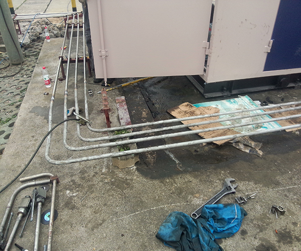 下圖為齊達(dá)康工作人員為中能燃?xì)忾L豐加氣站進(jìn)行舊站改造。