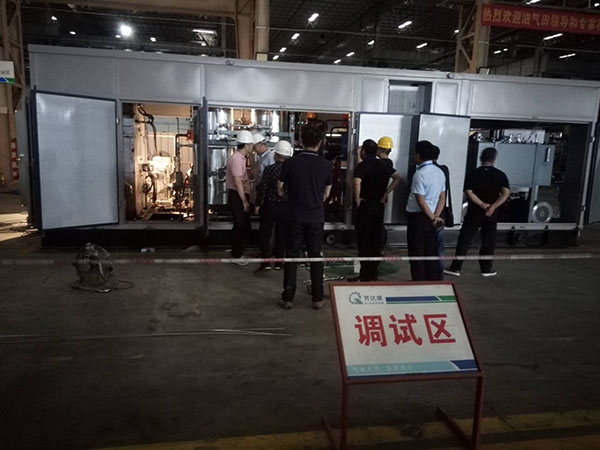 發(fā)布會結(jié)束后,客戶前往武漢齊達康公司車間參觀撬裝式井口氣回收處理裝置。