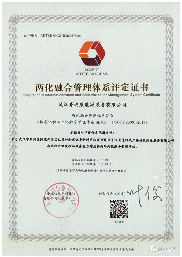 武漢齊達(dá)康從2020年8月7日開始啟動兩化融合貫標(biāo)工作,在齊達(dá)康唐總帶領(lǐng)下,公司全體員工共同努力,通過近一年時間來建立和實施兩化融合管理體系,公司自主研發(fā)了遠(yuǎn)程運維管理平臺和EIMS企業(yè)綜合管理平臺,著力打造遠(yuǎn)程運維管理能力和產(chǎn)供銷財一體化管理能力。2021年6月2-3日,齊達(dá)康兩化融合管理體系進(jìn)入第二階段現(xiàn)場審核評定,三位評定專家通過訪談、現(xiàn)場調(diào)查、信息系統(tǒng)運行查驗、資料審查等方式,對齊達(dá)康兩化融合管理體系運行情況進(jìn)行嚴(yán)格審核評定,得到了評定專家的一致好評。武漢齊達(dá)康順利通過兩化融合專家組現(xiàn)場評定審核,標(biāo)志著齊達(dá)康信息化建設(shè)邁向一個新的臺階。