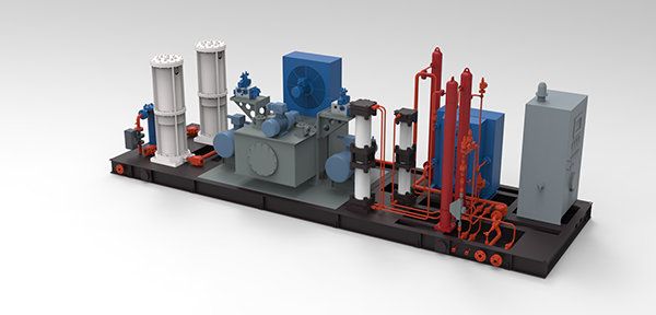 YB型氣液混輸液壓壓縮機,是將井口出來的低壓氣液混輸成分通過過濾、增壓、混輸及分離、氣舉以保證管道出口較高壓力的氣液混輸成分和提供高壓的氣舉壓力。YB型氣液混輸液壓壓縮機是專門針對低效井設計研發(fā)的,具備混輸和氣舉功能一體的裝置。