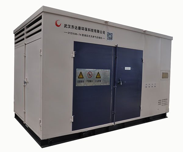 2YZ1500-74B型天然氣液壓壓縮機組適用于日產(chǎn)量為15000Nm³-25000Nm³的CNG加氣子站,可工作于有氣瓶組或儲氣井的加氣站工藝。